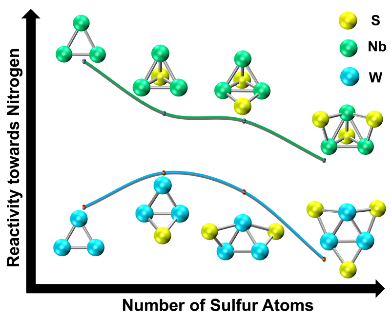 我们使用密度泛函理论计算了不同数量S配体的三核金属团簇Nb3Sn和W3Sn与N2的反应机理。结果表明,铌团簇比钨团簇具有更好的反应活性;随着配体原子的增加,铌团簇的反应活性逐渐降低,而钨团簇则在包含一个硫原子时活性最高。该论文在Wiley旗下物理化学权威期刊ChemPhysChem发表。华北电力大学数理学院为第一单位,留学硕士生Joseph Israel Gurti为第一作者,教师丁迅雷为通讯作者。