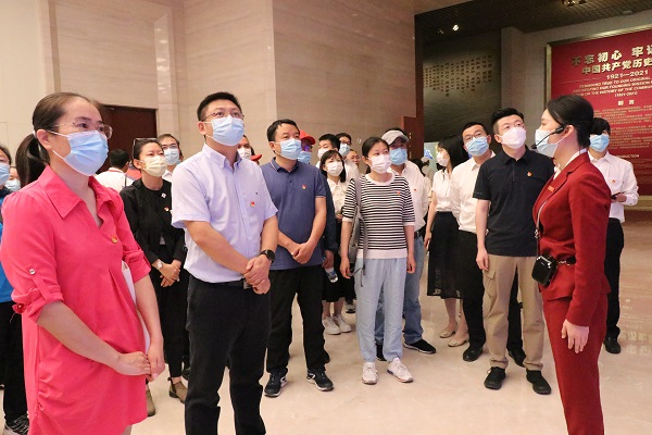 跟随讲解员的讲解,循着一幅幅照片、一件件文物实物,一个个历史场景,全体党员全方位、沉浸式重温了中国共产党百年探索的历史足迹。珍贵的照片和文物,曲折艰辛的奋斗历程,党员们感受着百年大党砥砺奋进的峥嵘岁月,聆听着古老民族迈向复兴的铿锵足音,思考着中国共产党员在中国社会前进变化中的担当与责任,在这本“立体党史书”里,党员同志们深受震撼和鼓舞。