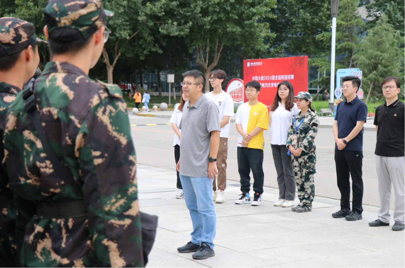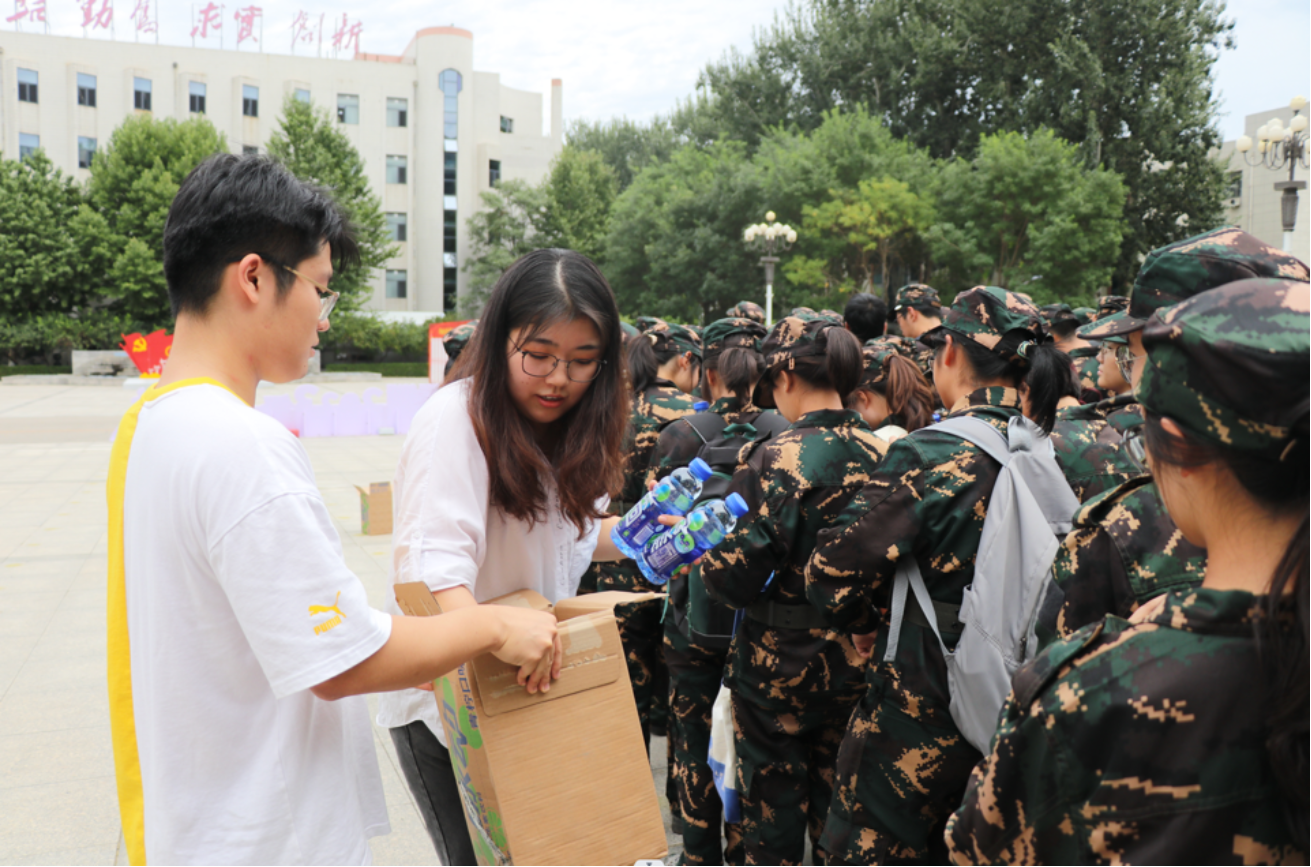 2023年9月19日下午两点,数理学院党委书记包小勇、党委副书记林林、团委书记王炜、2023级辅导员宋金溪及团学代表于学校主楼礼堂前慰问正在军训的2023级新生,以勉励刻苦军训的2023级全体新生。