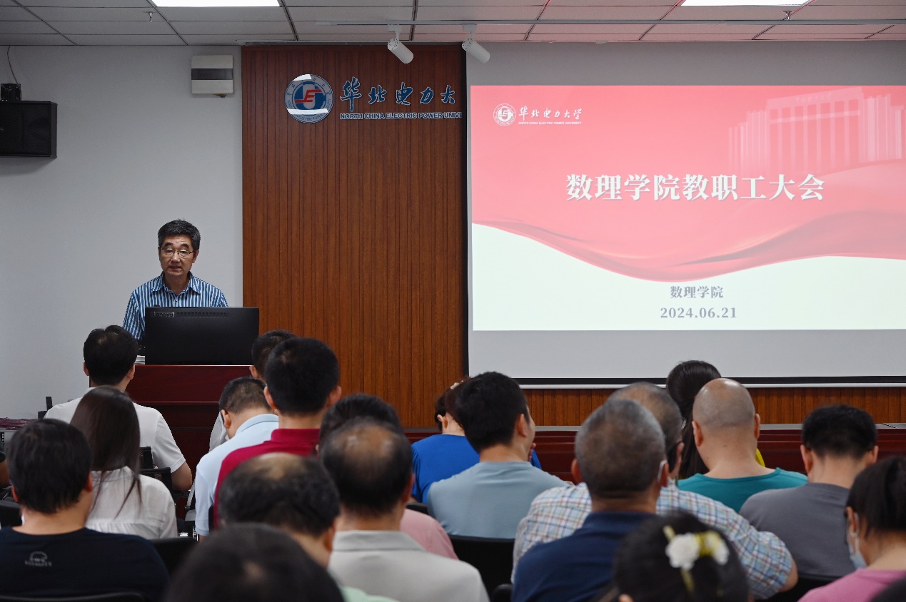 6月21日下午,数理学院召开教职工大会、师德师风建设大会暨党纪学习教育大会,学院领导班子成员和全体教职工参加会议。会议由党委副书记林林主持。