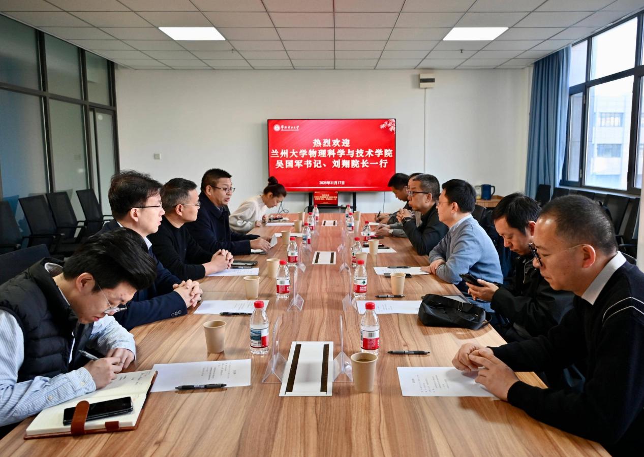 11月17日,兰州大学物理科学与技术学院党委书记吴国军、院长刘翔一行来院访问交流。学院党委书记包小勇、执行院长田永辉等出席座谈。座谈会由包小勇主持。