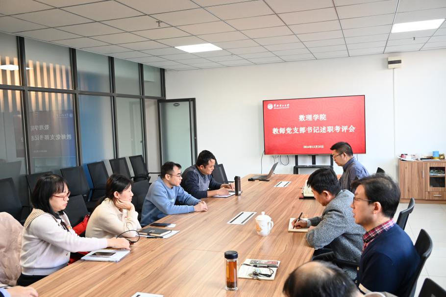 按照学校《关于开展2024年度教职工党支部书记述职评议考核工作的通知》相关要求,数理学院党委于12月25日召开了2024年度教职工党支部书记述职评议考核会议。数理学院党委书记包小勇,正处级组织员杨万华,党委副书记林林,副院长赵红涛、刘纪彩、党委委员丁迅雷出席会议。