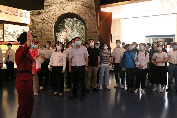 跟随讲解员的讲解,循着一幅幅照片、一件件文物实物,一个个历史场景,全体党员全方位、沉浸式重温了中国共产党百年探索的历史足迹。珍贵的照片和文物,曲折艰辛的奋斗历程,党员们感受着百年大党砥砺奋进的峥嵘岁月,聆听着古老民族迈向复兴的铿锵足音,思考着中国共产党员在中国社会前进变化中的担当与责任,在这本“立体党史书”里,党员同志们深受震撼和鼓舞。